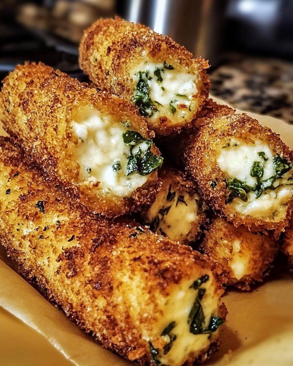 Spinach Dip Mozzarella Sticks are a delicious twist on traditional mozzarella sticks, combining the creamy richness of spinach dip with the gooey, melty delight of mozzarella. They are perfect as a snack or appetizer and are sure to be a hit at any gathering.
