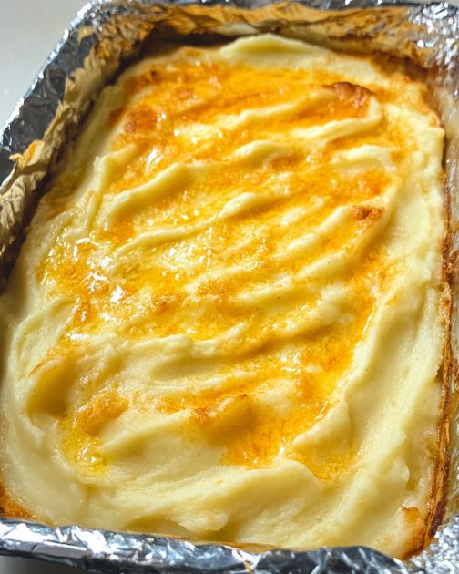 Cheesy baked mashed potatoes are a comforting and indulgent side dish that brings together the creamy texture of mashed potatoes with the rich, savory flavor of melted cheese. This dish has its roots in classic American comfort food, where potatoes and cheese are staple ingredients. It’s perfect for family gatherings, holiday dinners, or any occasion where you want to serve something warm and satisfying. The combination of creamy potatoes and gooey cheese makes it a crowd-pleaser, and the slight browning on top adds a delightful texture contrast.